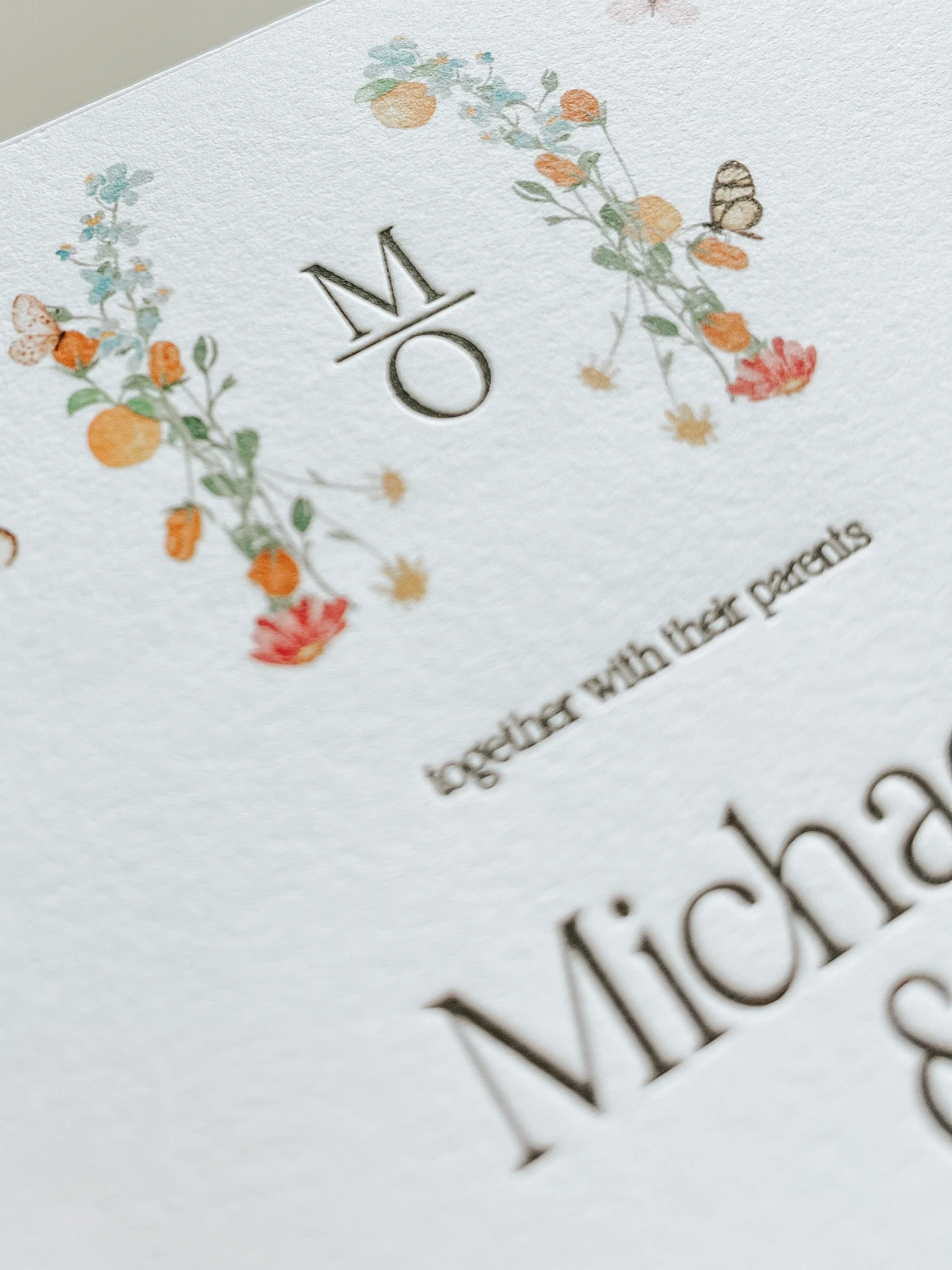 My favorite way to elevate a suite is to include the print process of letterpress. This is a process that uses a metal plate and ink to physically press the words into the paper. It creates gorgeous texture that is irresistible to touch.